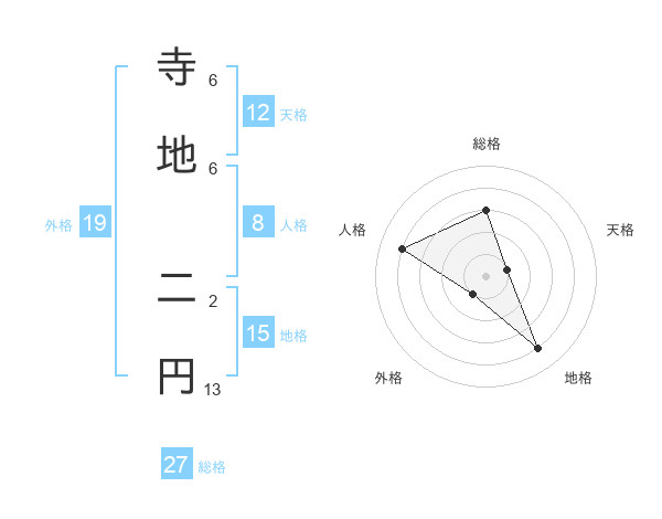 寺地 二円さんの総格は27画の3点!
