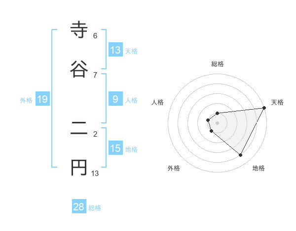 寺谷 二円さんの天格は13画の5点!