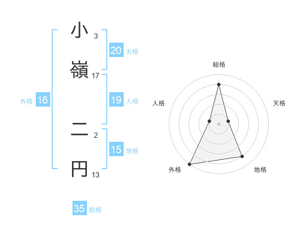 小嶺 二円さんの総格は35画の4点!