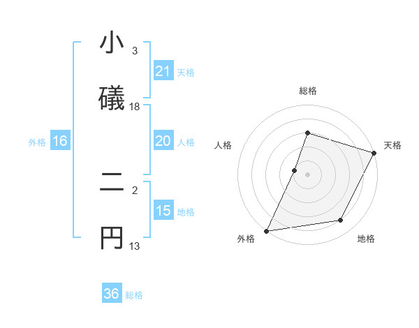 小礒 二円さんの天格は21画の5点!