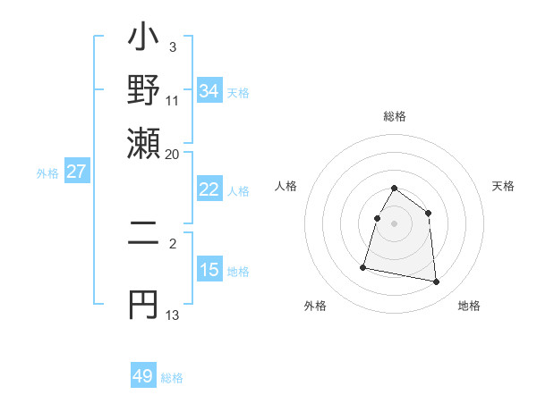 小野瀬 二円さんを姓名の画数から五運を鑑定
