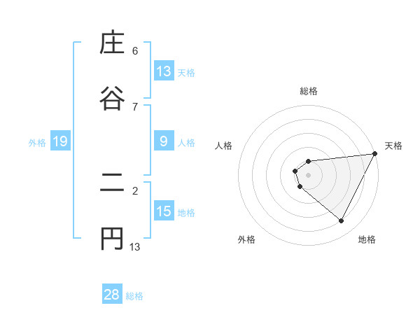庄谷 二円さんの天格は13画の5点!
