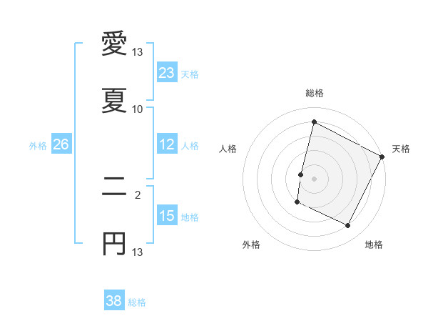 愛夏 二円さんを姓名の画数から五運を鑑定