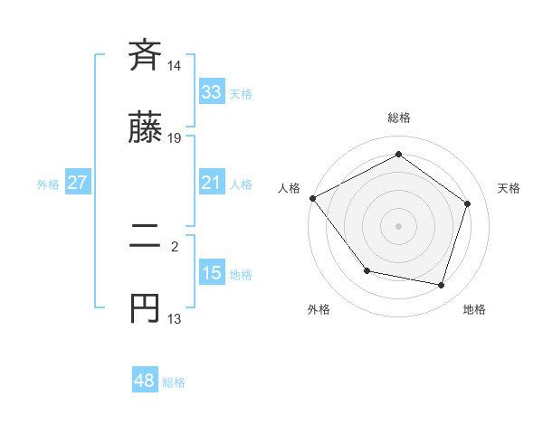 斉藤 二円さんを姓名の画数から五運を鑑定