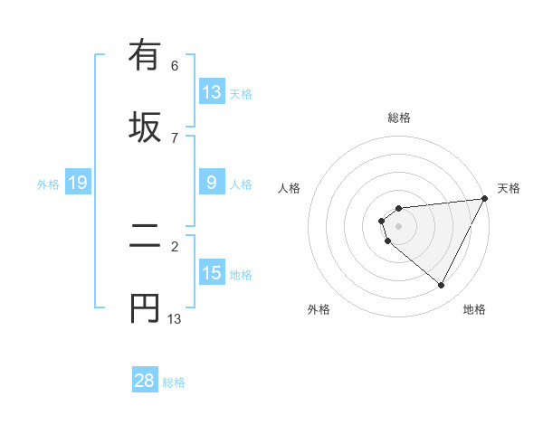 有坂 二円さんの天格は13画の5点!