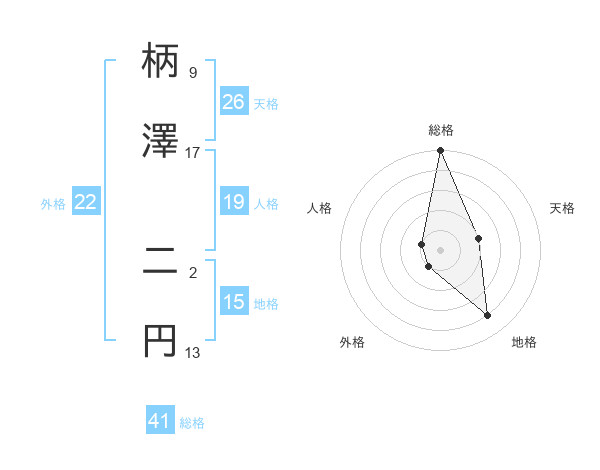 柄澤 二円さんの総格は41画の5点!