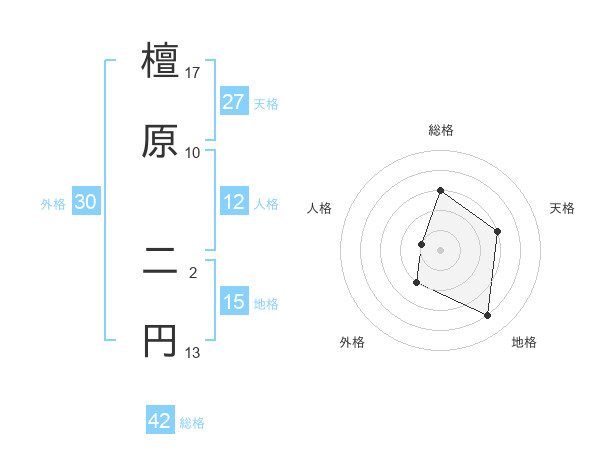檀原 二円さんの総格は42画の3点!