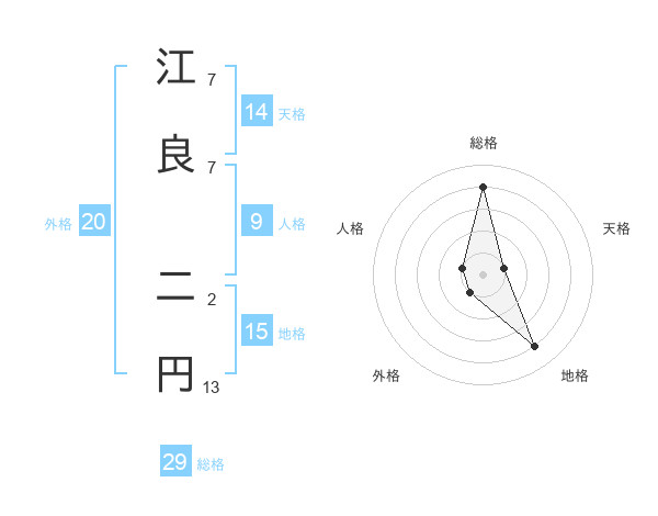 江良 二円さんの総格は29画の4点!