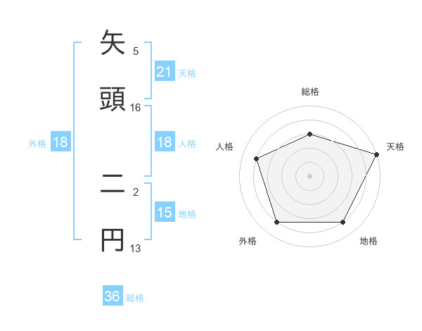 矢頭 二円さんを姓名の画数から五運を鑑定
