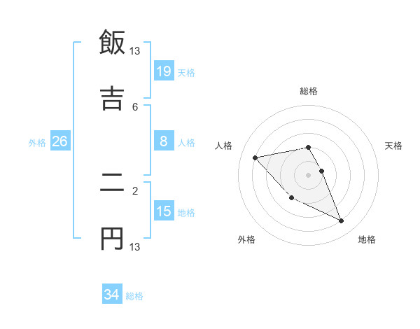 飯吉 二円さんを姓名の画数から五運を鑑定