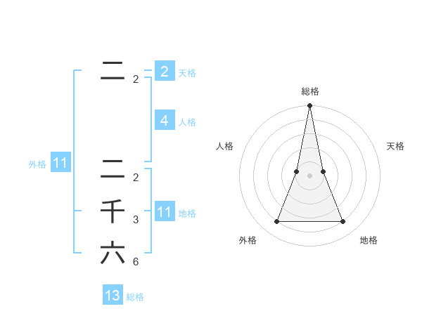 二 二千六さんの外格は11画の4点!