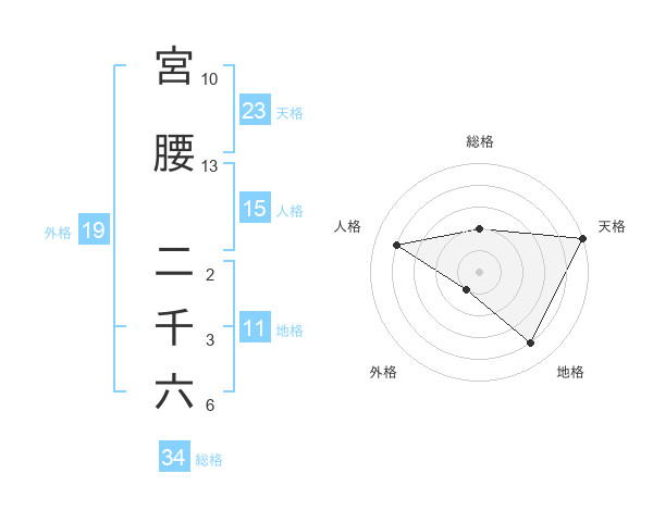 宮腰 二千六さんを姓名の画数から五運を鑑定