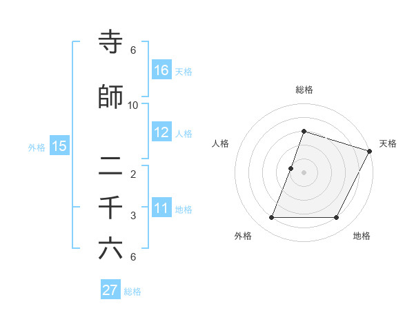 寺師 二千六さんの天格は16画の5点!