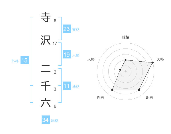 寺沢 二千六さんの外格は15画の4点!