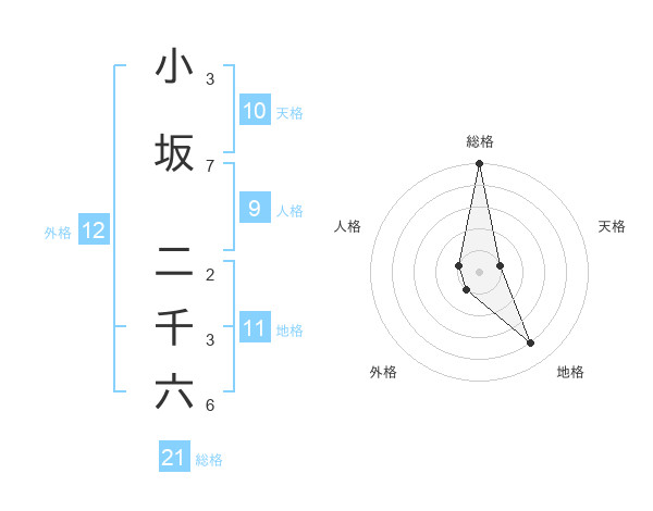 小坂 二千六さんの総格は21画の5点!