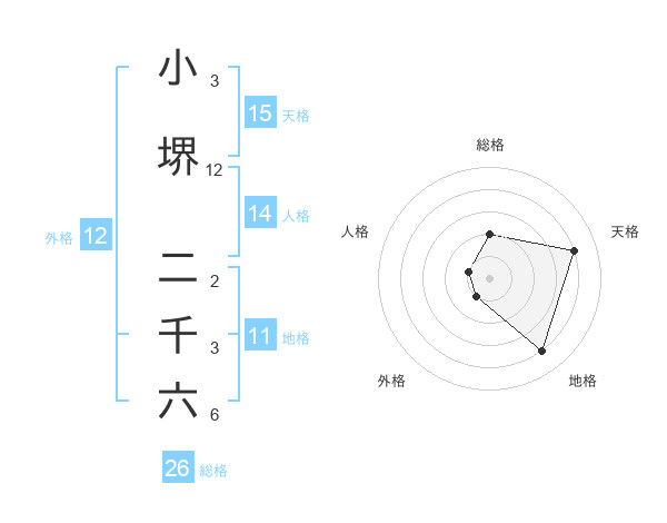 小堺 二千六さんの総格は26画の2点!
