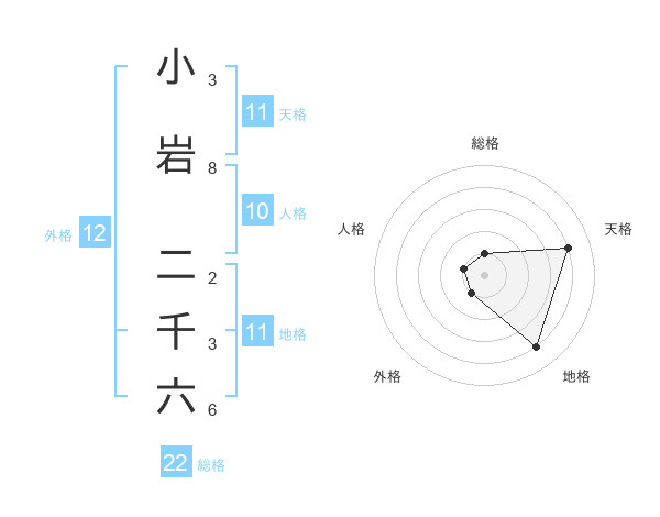 小岩 二千六さんを姓名の画数から五運を鑑定
