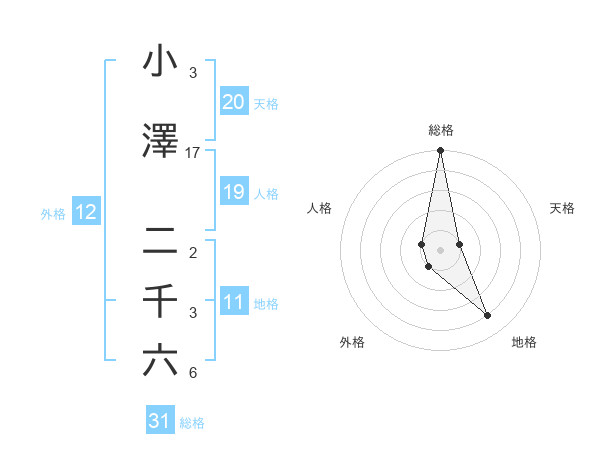 小澤 二千六さんの総格は31画の5点!