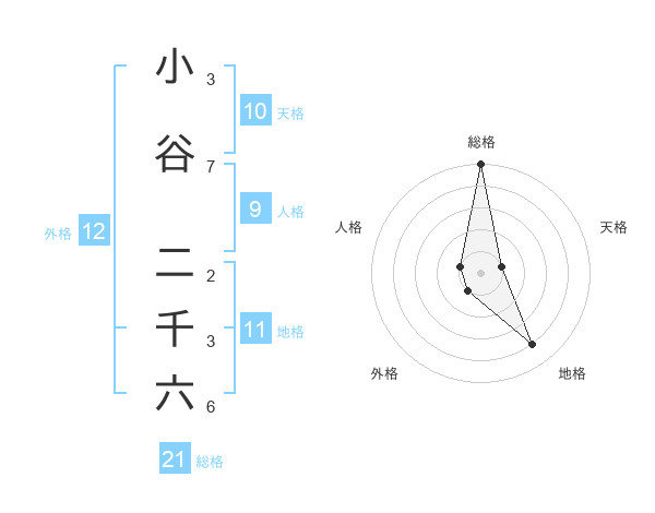 小谷 二千六さんの総格は21画の5点!