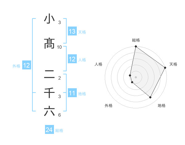 小髙 二千六さんの天格は13画の5点!