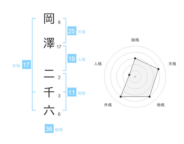 岡澤 二千六さんの総格は36画の3点!