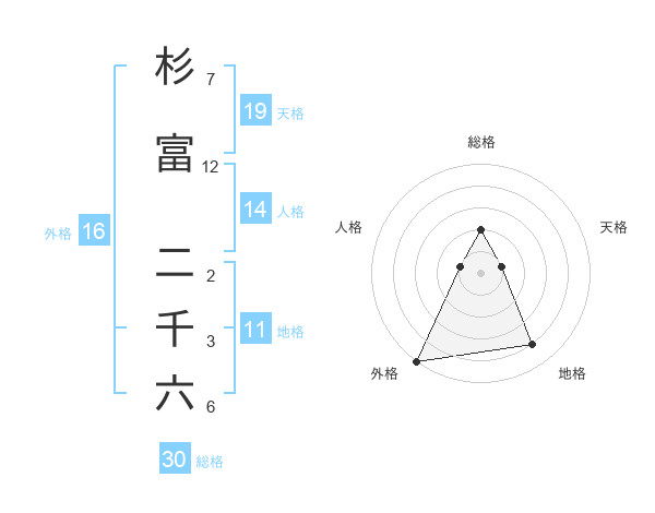 杉富 二千六さんの外格は16画の5点!