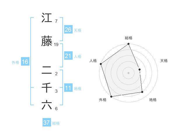 江藤 二千六さんの総格は37画の5点!