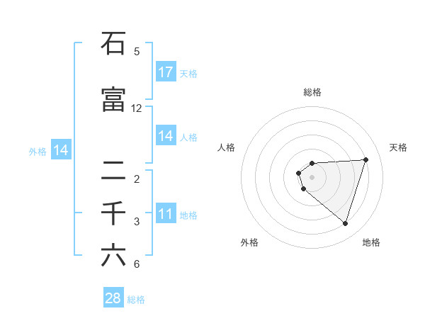 石富 二千六さんの天格は17画の4点!