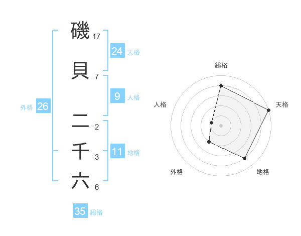 磯貝 二千六さんの天格は24画の5点!