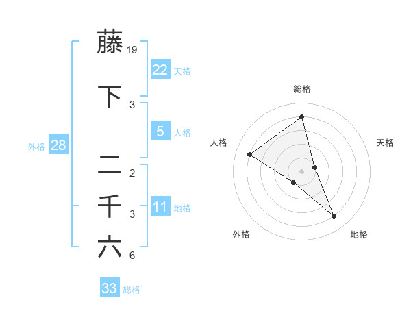 藤下 二千六さんの総格は33画の4点!