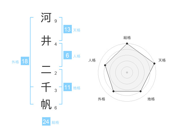 河井 二千帆さんを姓名の画数から五運を鑑定