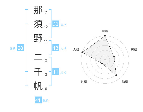 那須野 二千帆さんを姓名の画数から五運を鑑定
