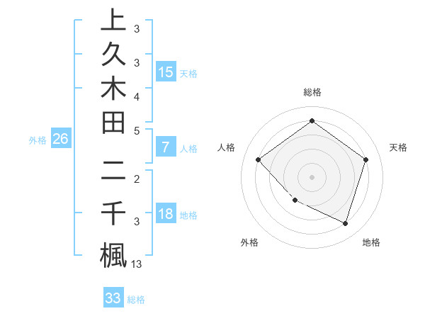 上久木田 二千楓さんを姓名の画数から五運を鑑定