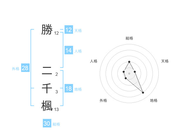 勝 二千楓さんの外格は28画の1点!