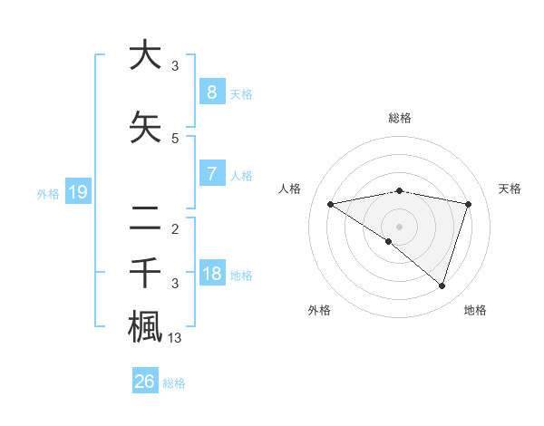 大矢 二千楓さんを姓名の画数から五運を鑑定