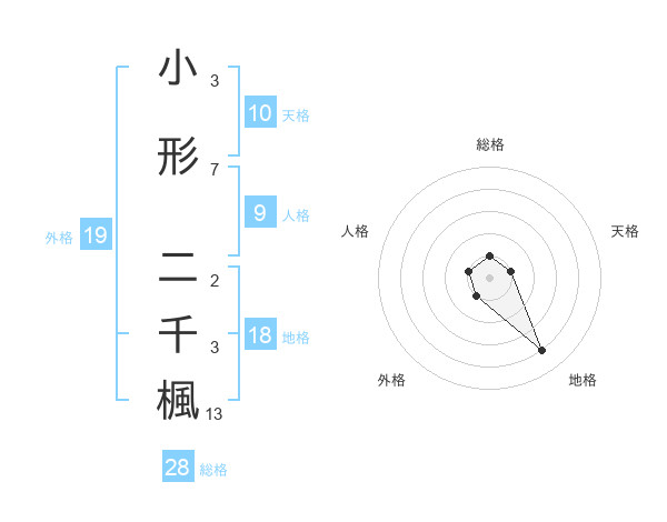 小形 二千楓さんを姓名の画数から五運を鑑定