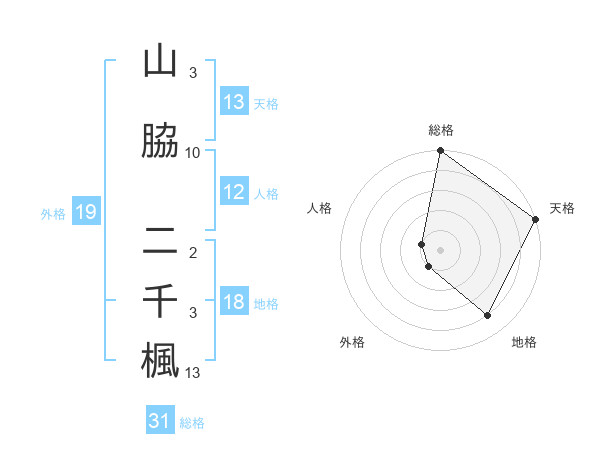 山脇 二千楓さんを姓名の画数から五運を鑑定
