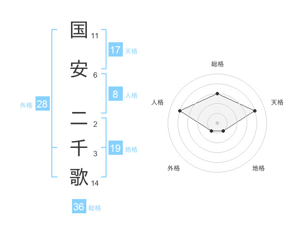 国安 二千歌さんの天格は17画の4点!