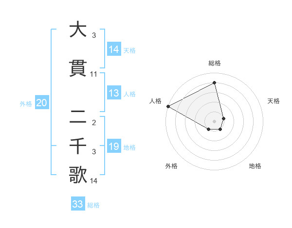 大貫 二千歌さんを姓名の画数から五運を鑑定