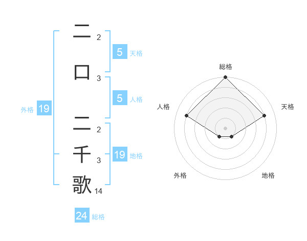 二口 二千歌さんの外格は19画の1点!