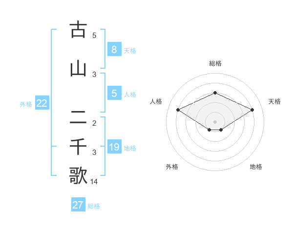 古山 二千歌さんを姓名の画数から五運を鑑定