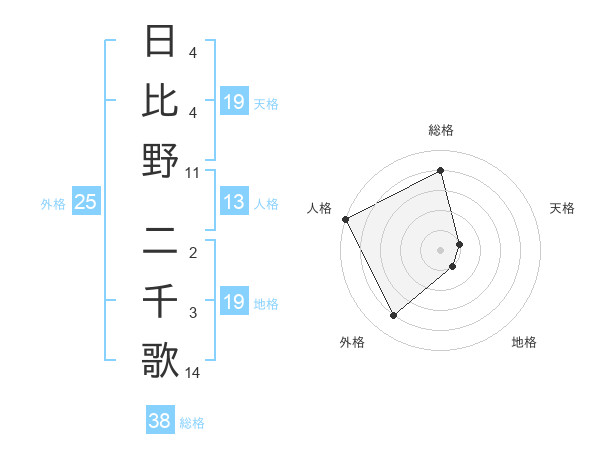 日比野 二千歌さんの外格は25画の4点!