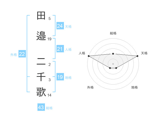 田邉 二千歌さんを姓名の画数から五運を鑑定