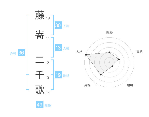 藤嵜 二千歌さんを姓名の画数から五運を鑑定