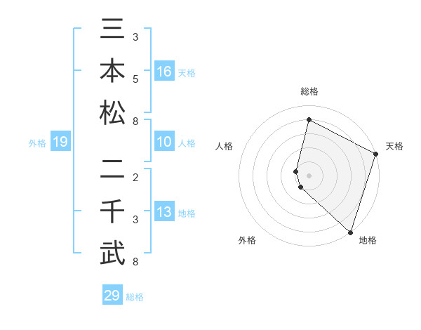 三本松 二千武さんを姓名の画数から五運を鑑定
