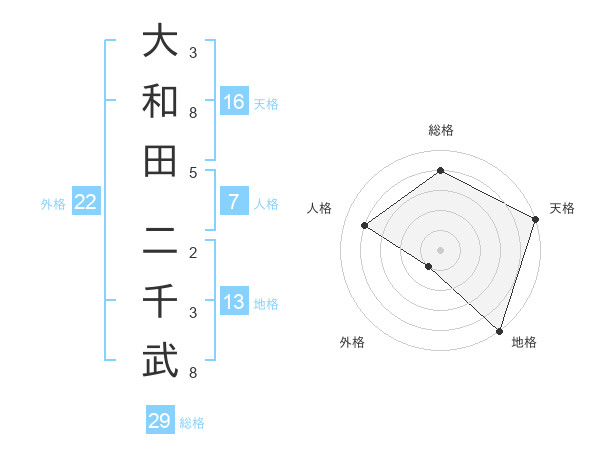 大和田 二千武さんを姓名の画数から五運を鑑定