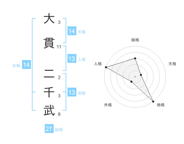大貫 二千武さんの総格は27画の3点!