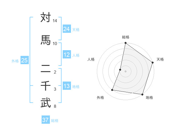対馬 二千武さんの総格は37画の5点!