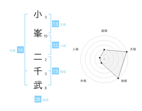 小峯 二千武さんを姓名の画数から五運を鑑定