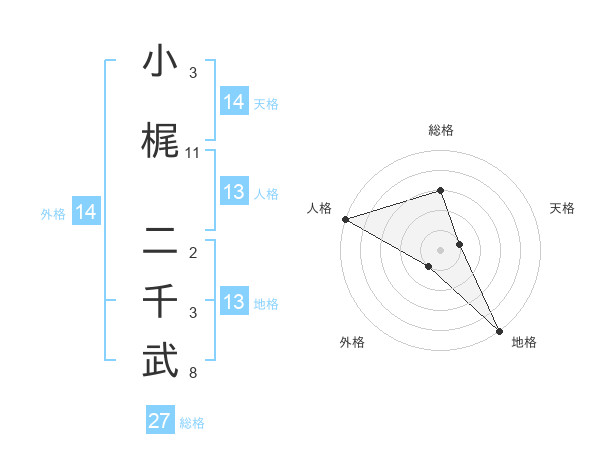 小梶 二千武さんを姓名の画数から五運を鑑定